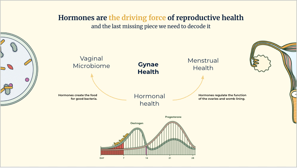 Your hormones — mainly estrogen and progesterone — rise and fall throughout the month. When estrogen levels are high (around ovulation), your vagina usually has more Lactobacilli and stays more acidic, which keeps it protected.